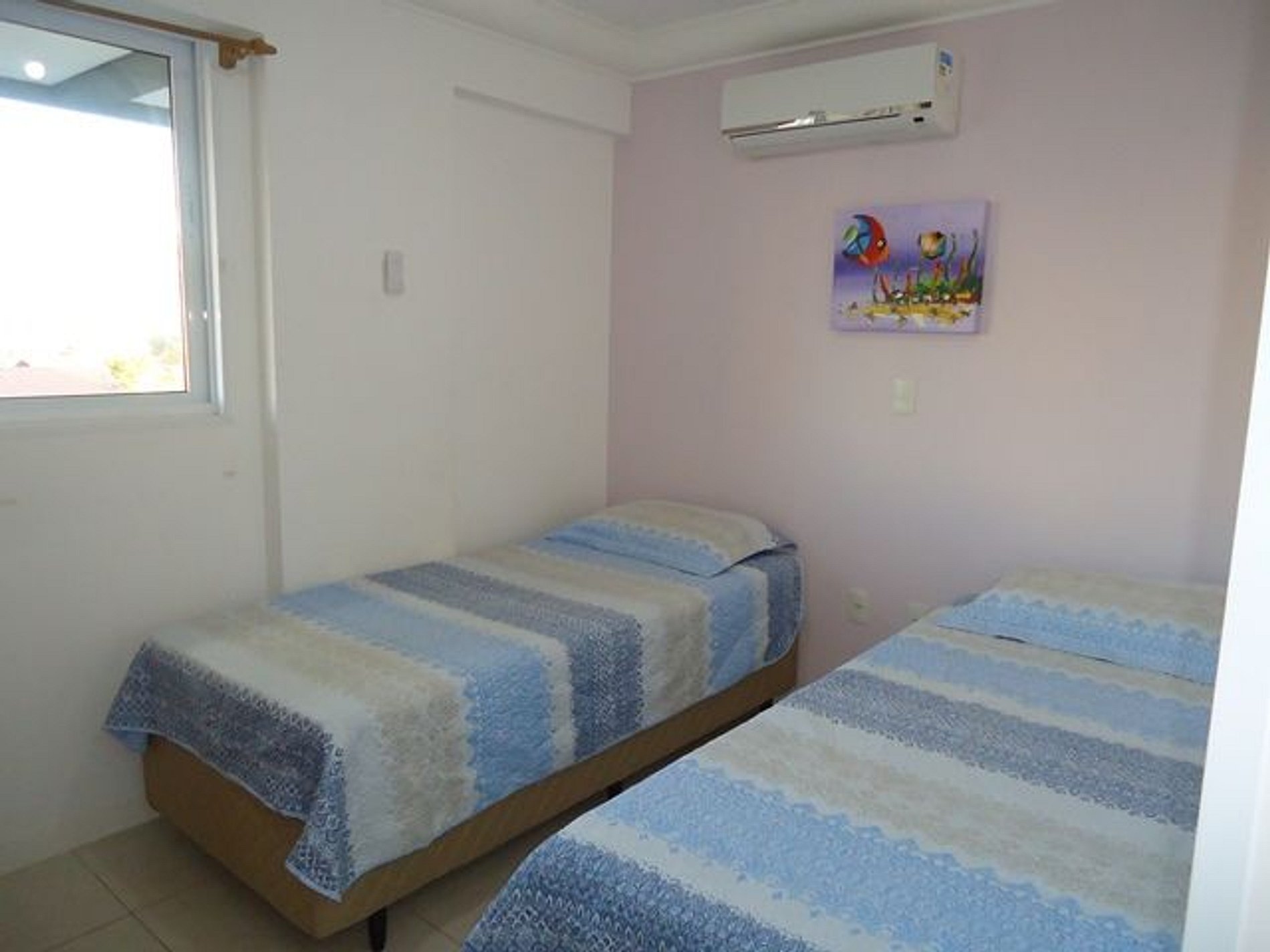 1 dormitório com ar, 2 camas de solteiro + 1 cama auxiliar + 1 colchão extra;