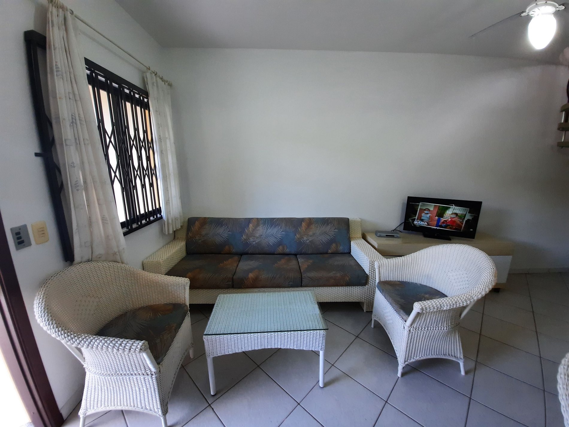 Sala de estar com TV com parabólica