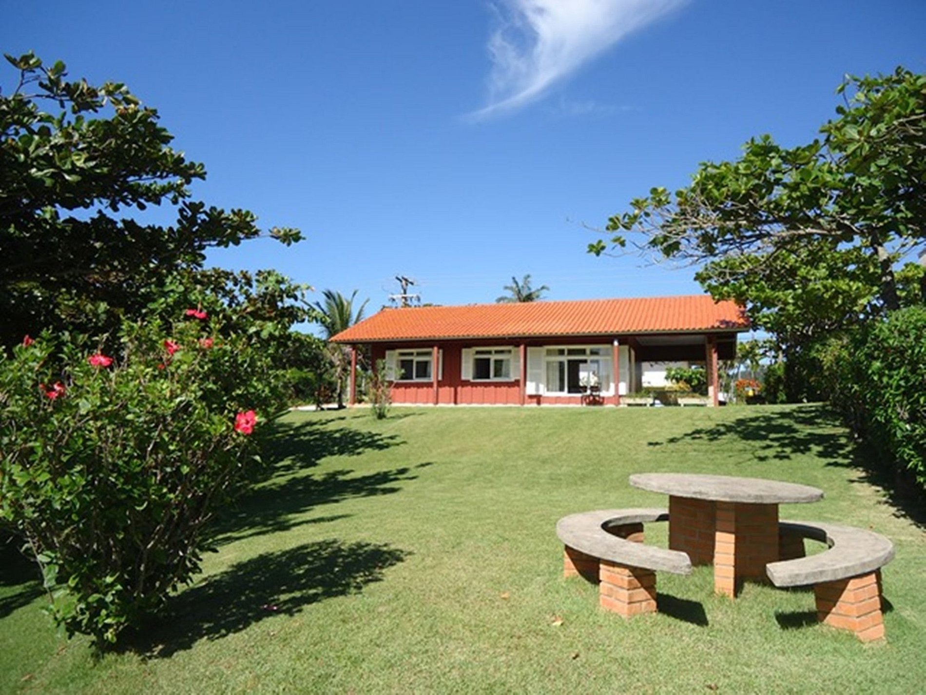 Com amplo jardim gramado;