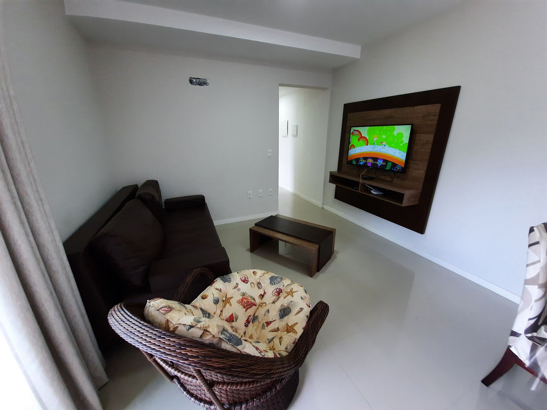 Sala com sofá cama, tv com parabólica