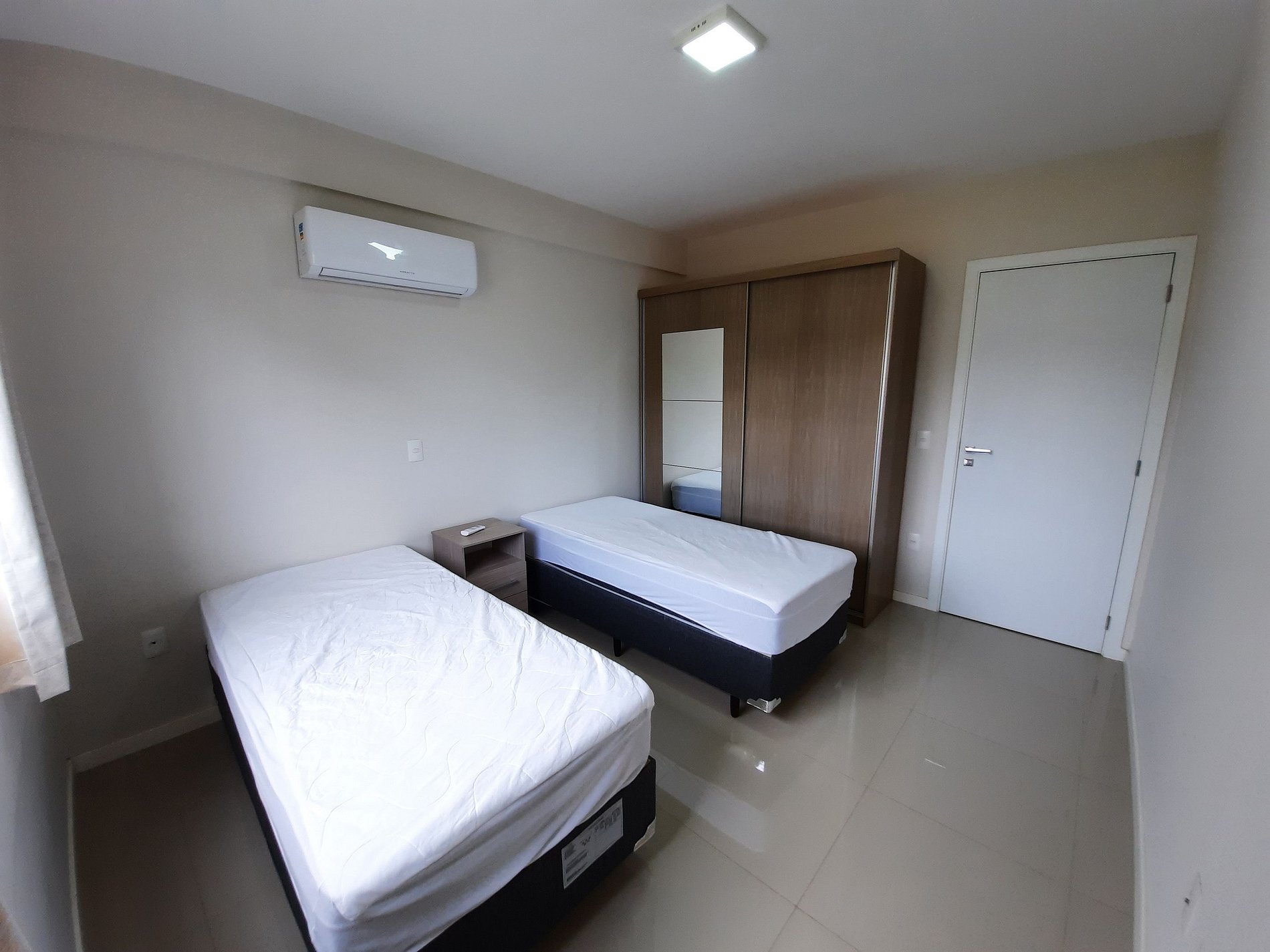 1 Dormitório com duas camas de solteiro, roupeiro e ar condicionado