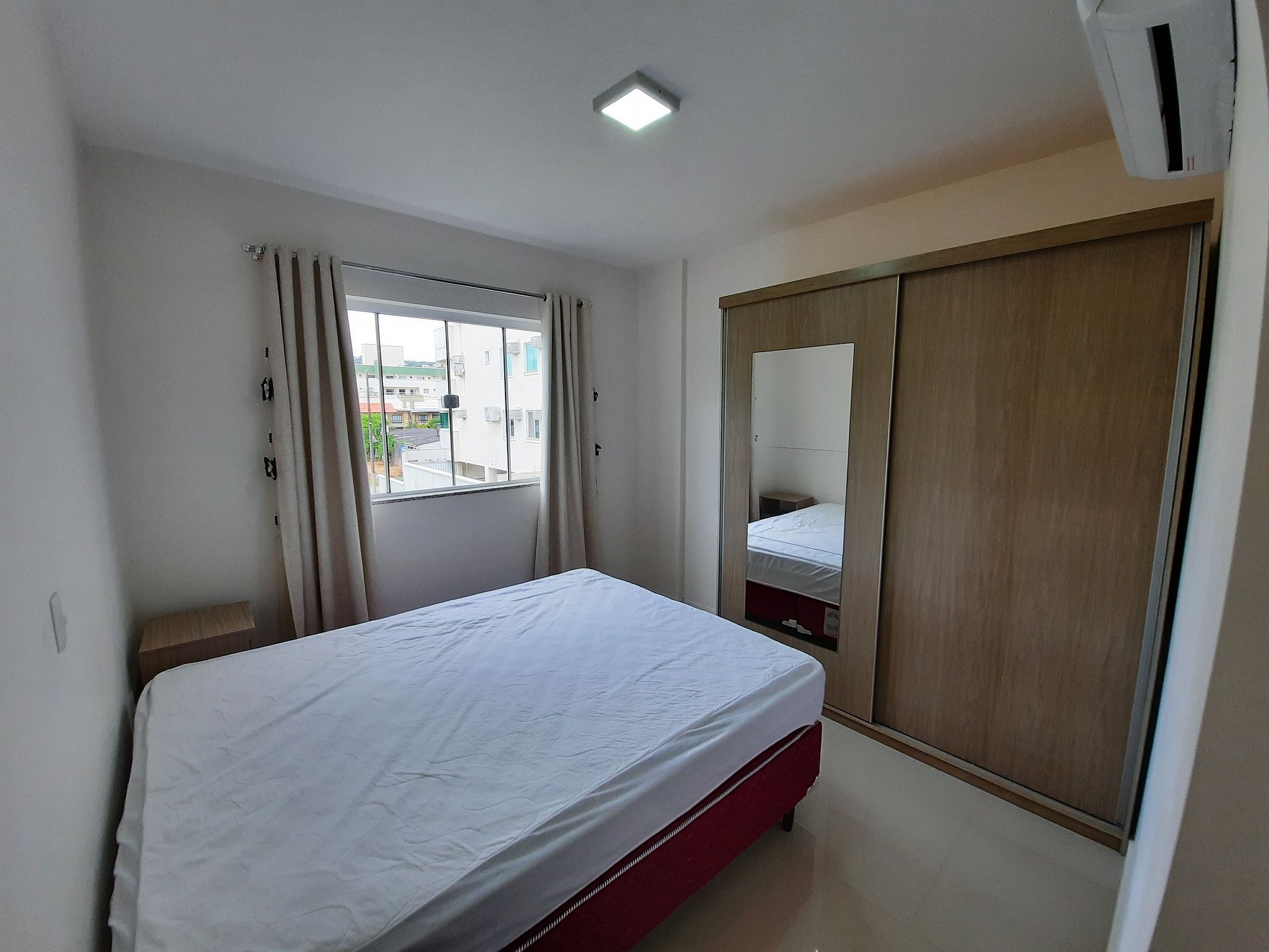 1 Dormitório com duas camas de solteiro, roupeiro e ar condicionado
