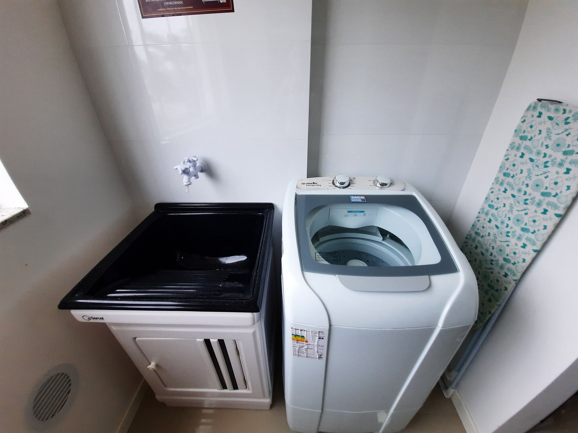 Área de serviço com máquina de lavar roupas;