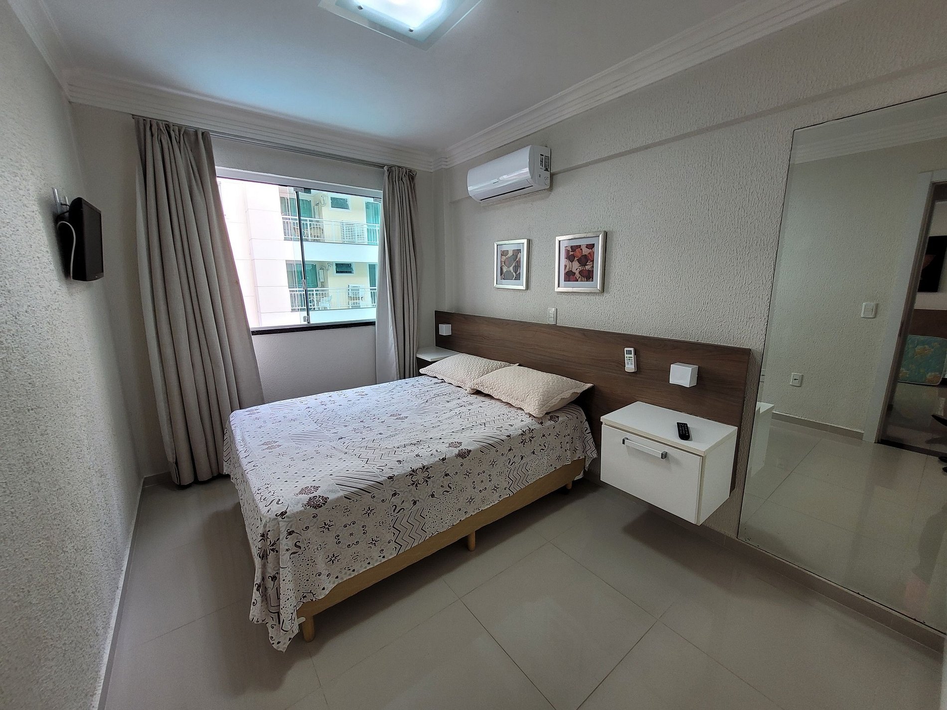 1 dormitório com cama de casal, ar condicionado split