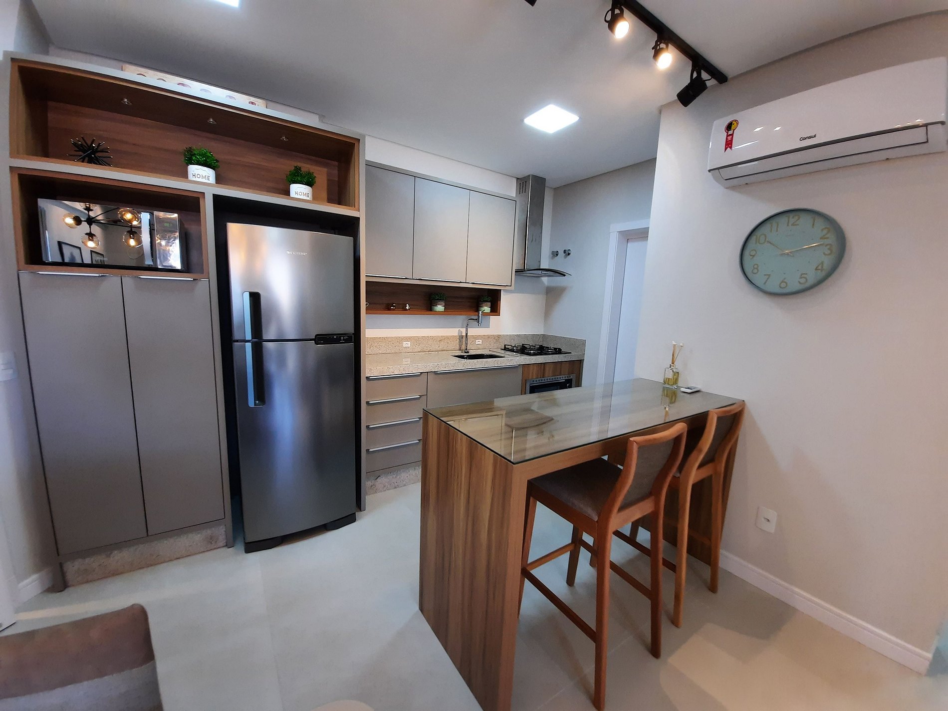 Cozinha com geladeira, fogão de mesa, forno elétrico, microondas, liquidificador, cafeteira e demais utensílios básico;
