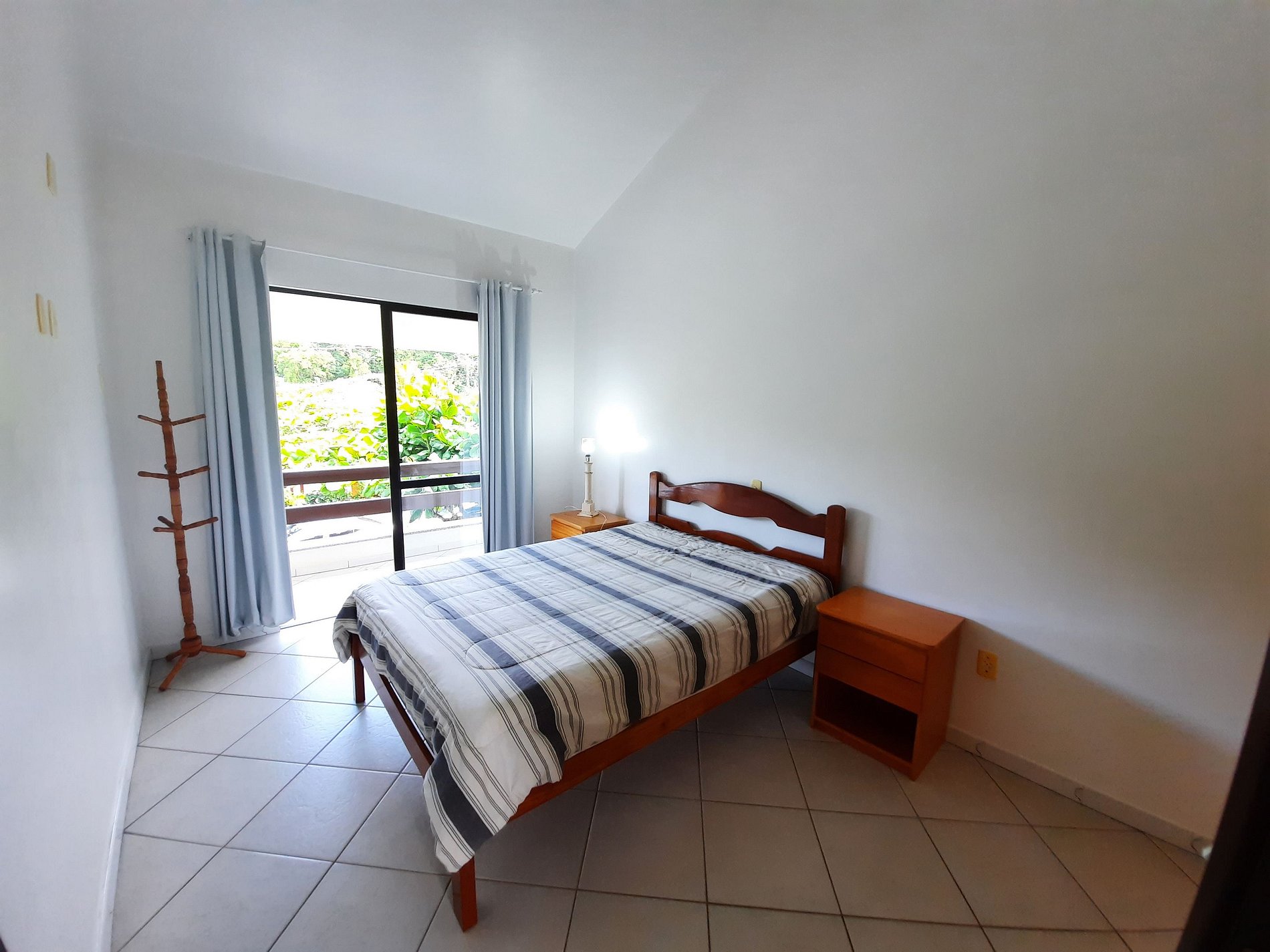 1 Dormitório com 1 cama de casal com, roupeiro e ar condicionado