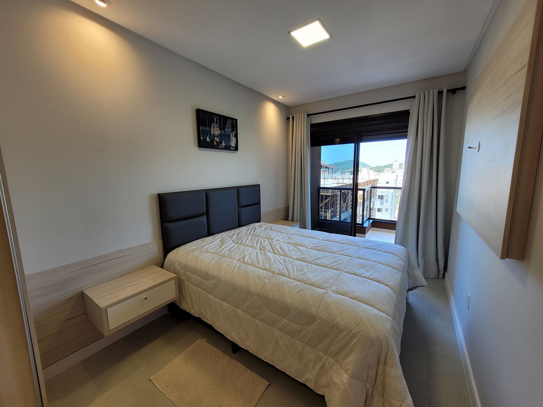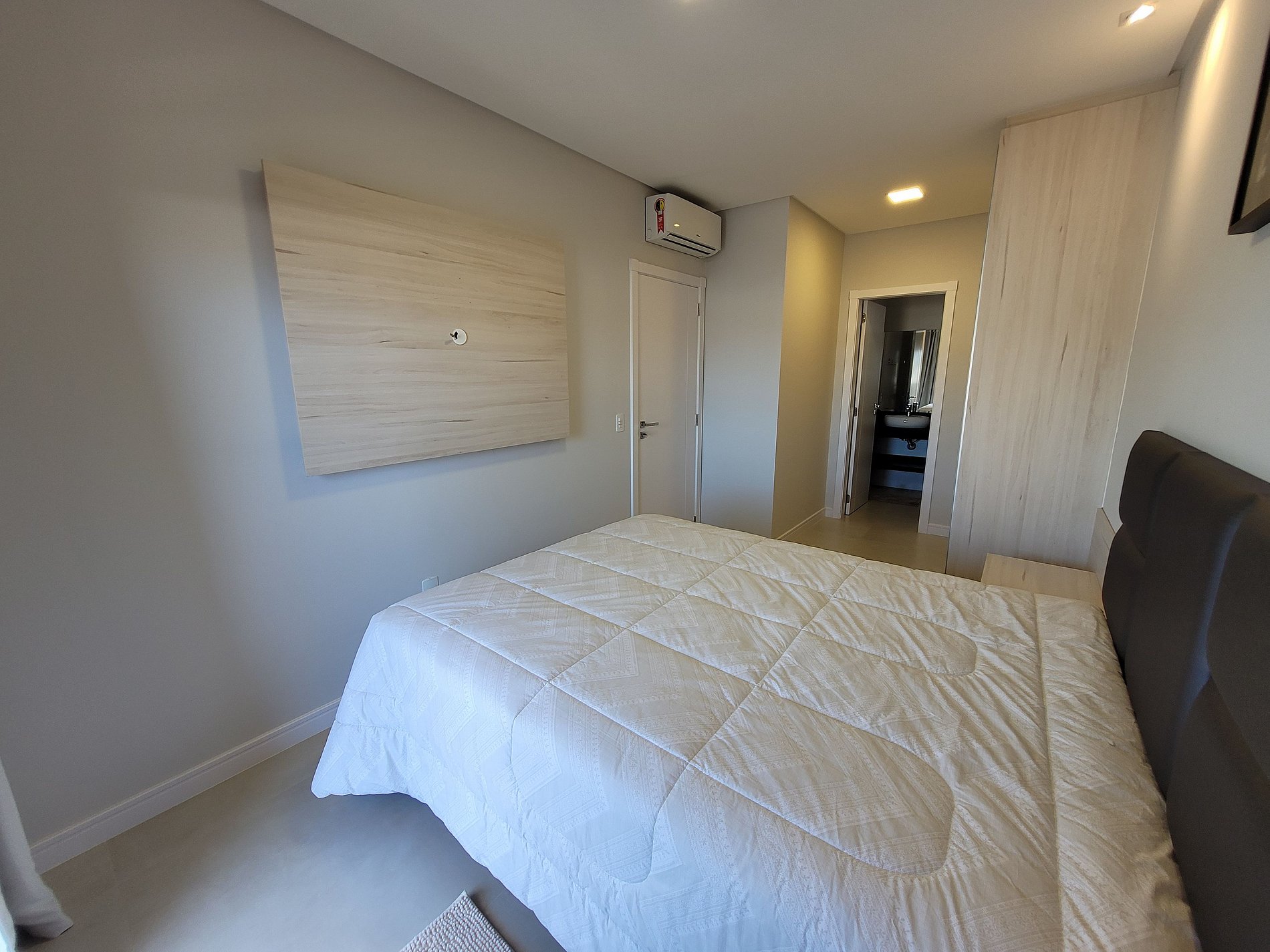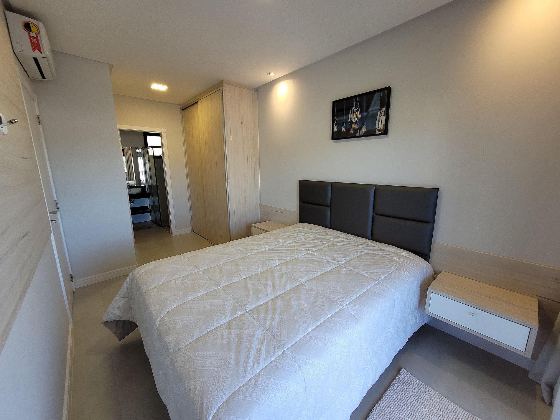01 Suíte com cama de casal (Queen 1.60m), guarda roupa e ar condicionado.