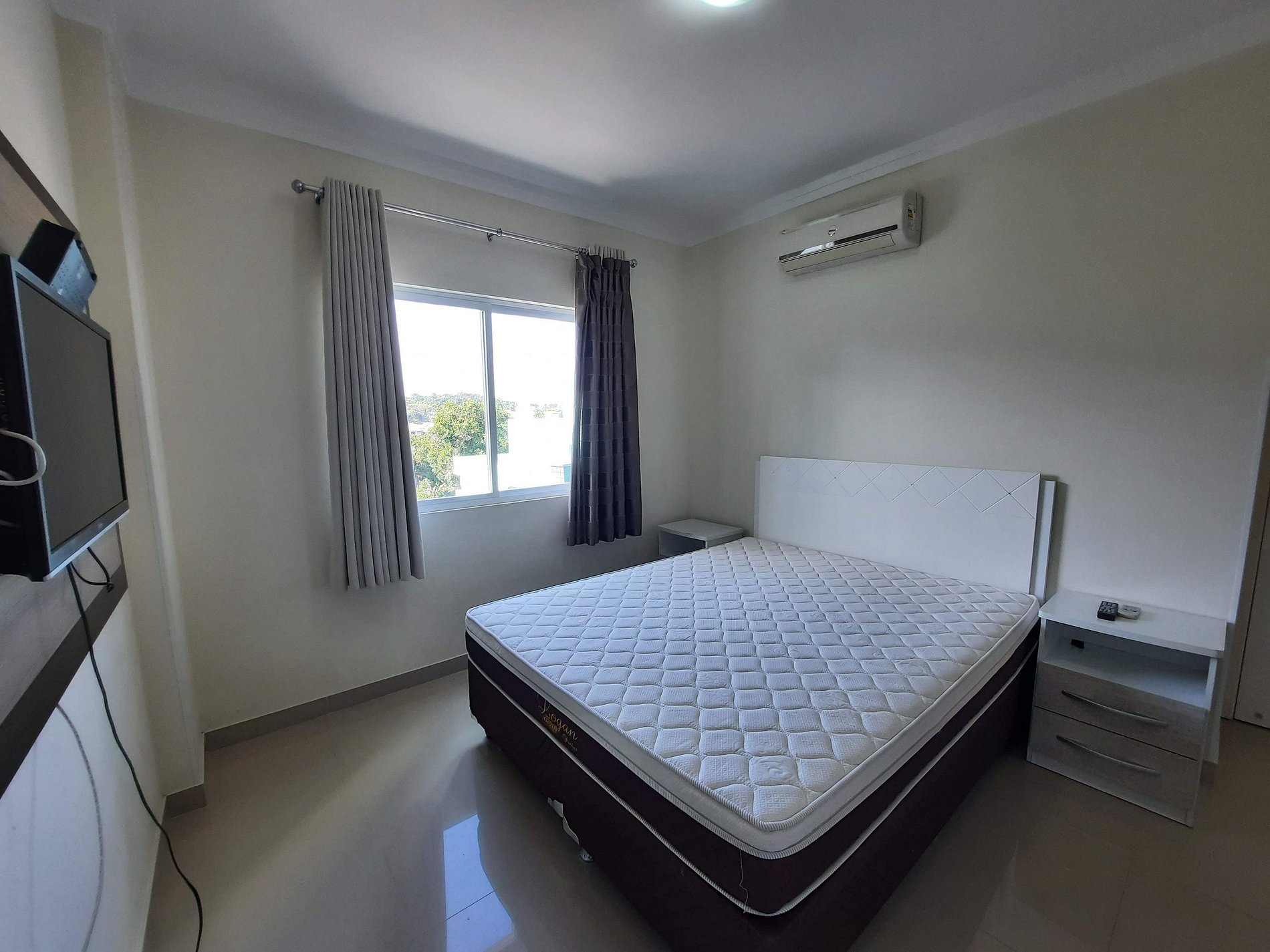 1 dormitório casal Box com ar condicionado + 1 colchão de solteiro (piso);