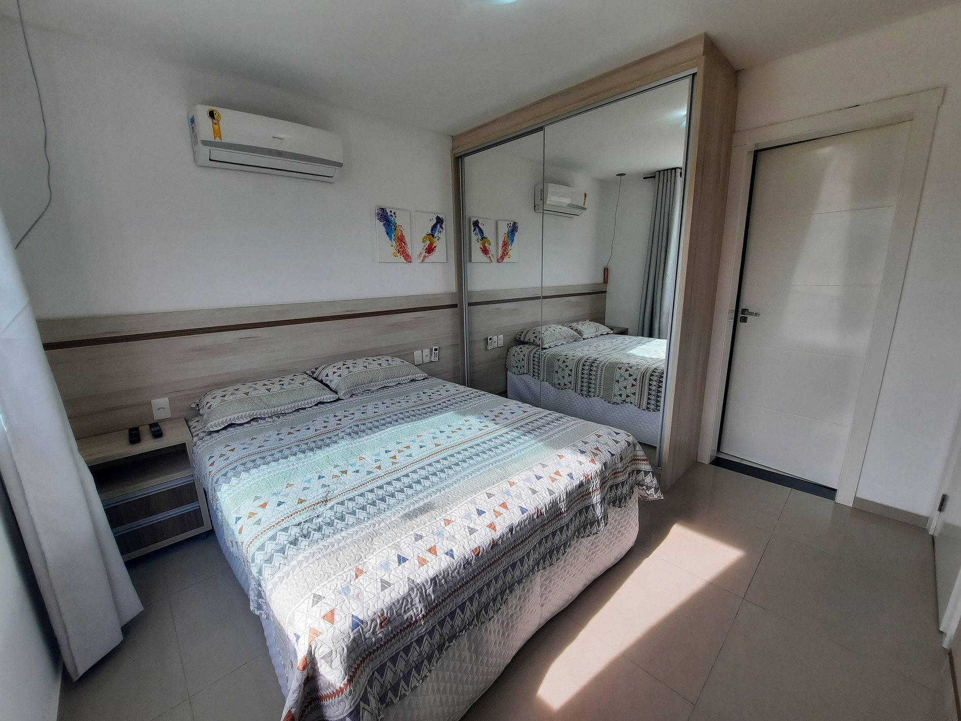 1 quarto com cama de casal, roupeiro e ar condicionado frio/quente;