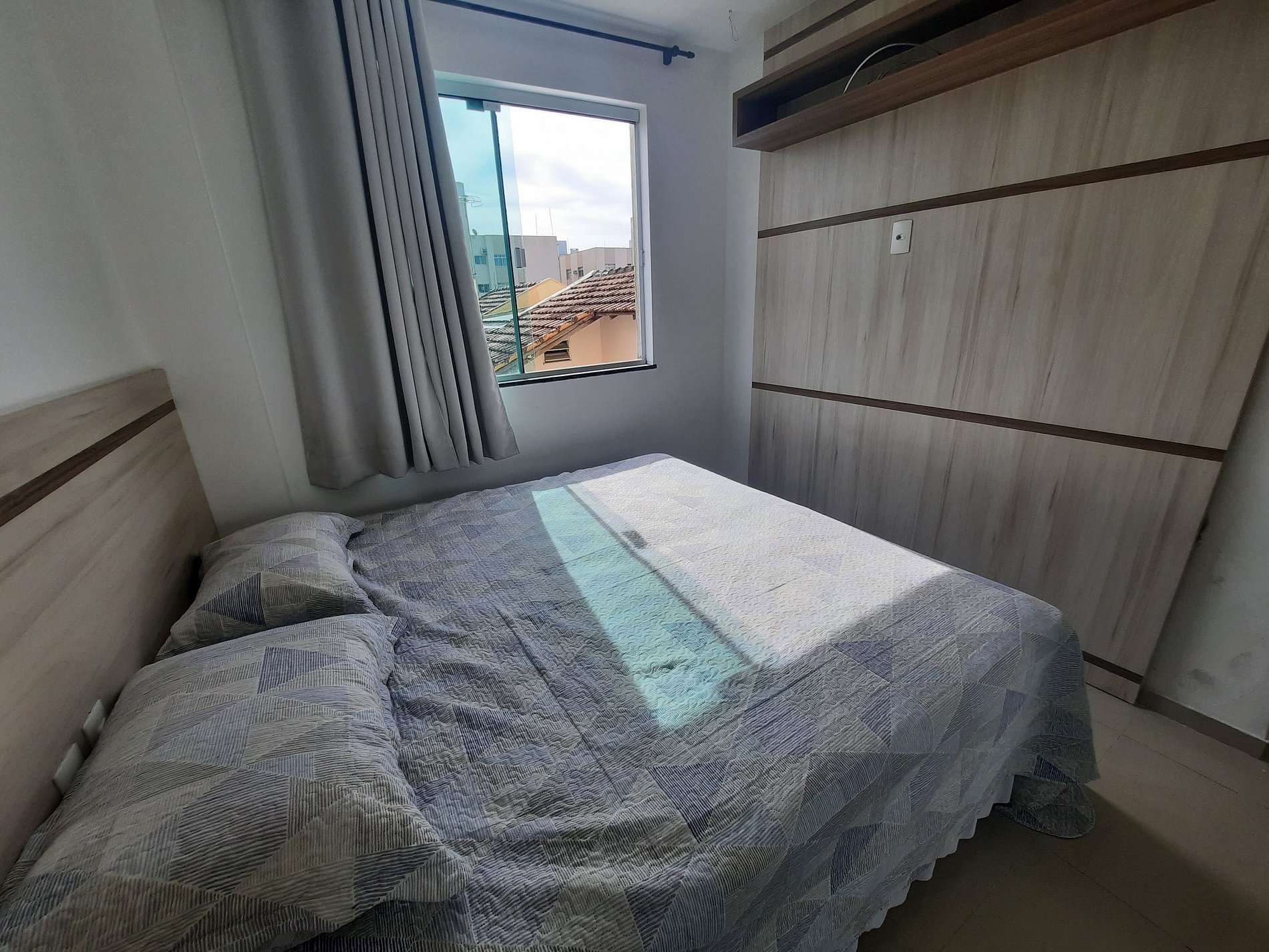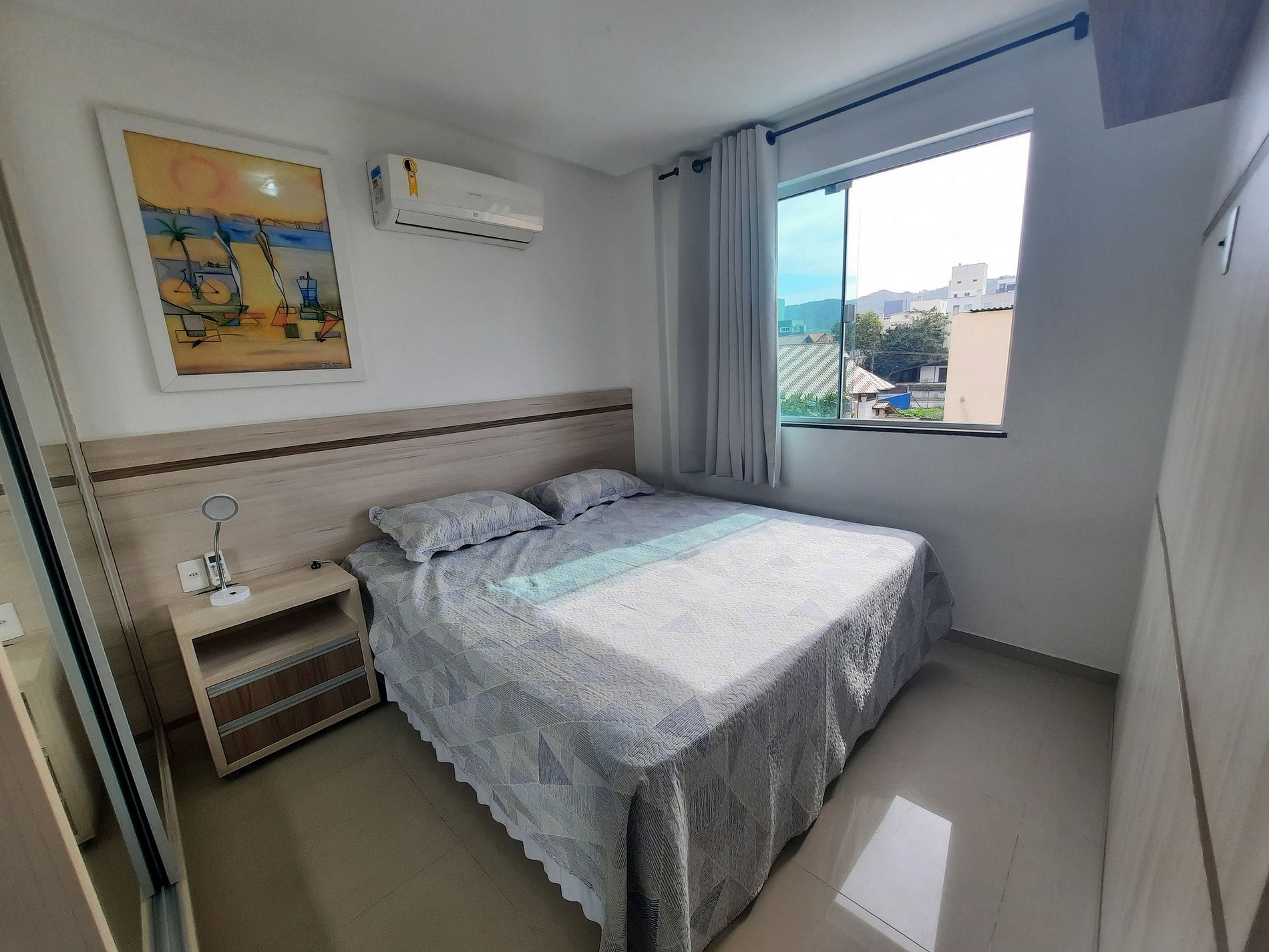 1 suíte de casal, roupeiro, ar condicionado frio/quente e TV, 1 banheiro com ducha higiénica;