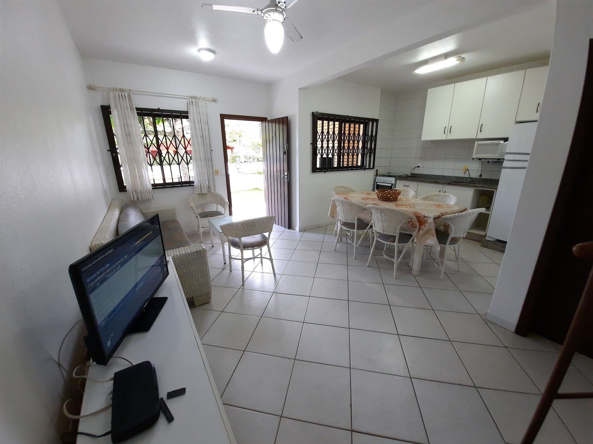 Sala de estar com TV com parabólica