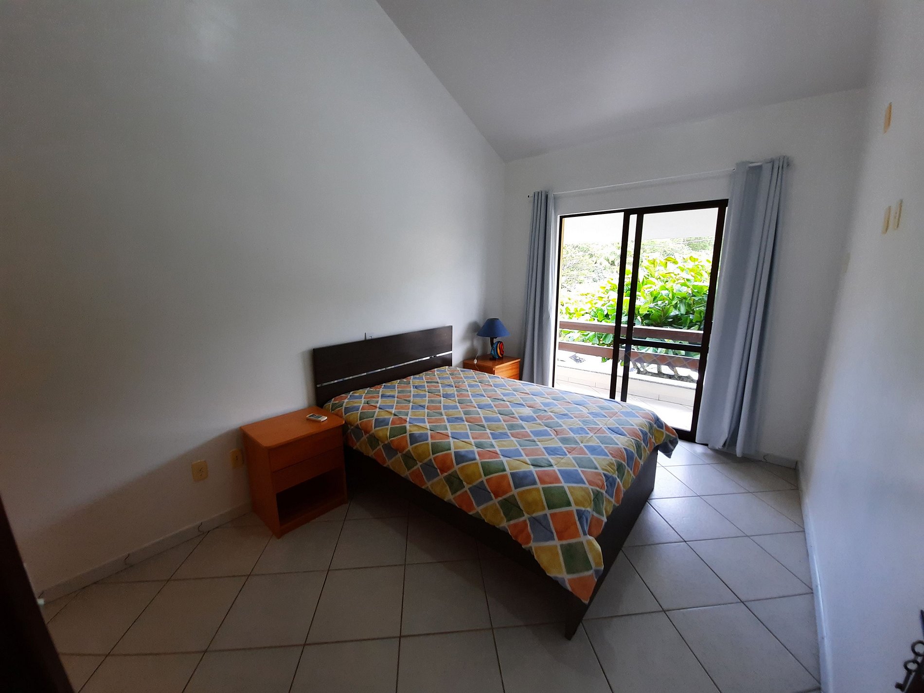 1 Dormitório com 1 cama de casal com, roupeiro e ar condicionado