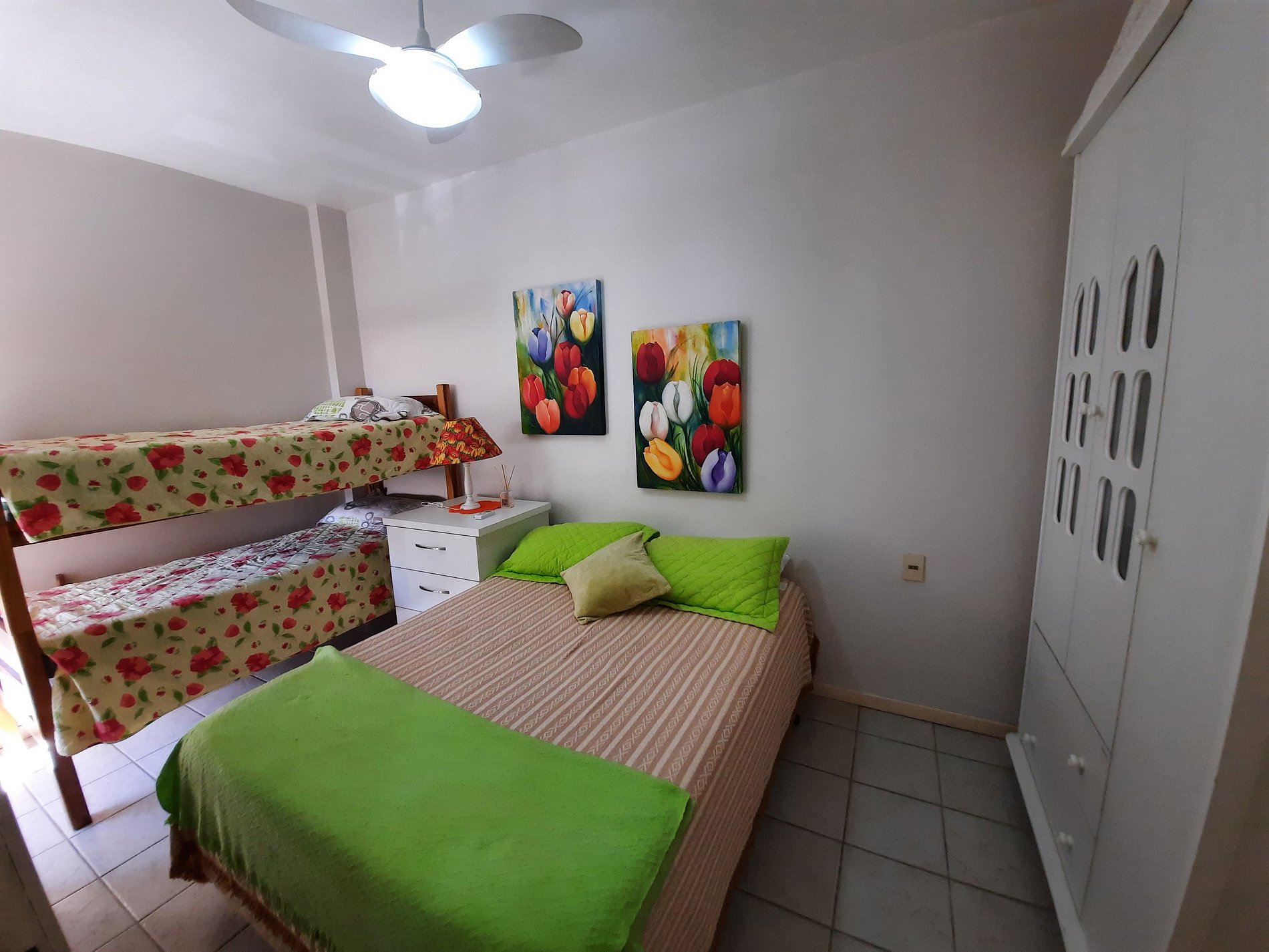 01 dormitório com 1 cama de casal e 1 beliche, roupeiro e ar condicionado;