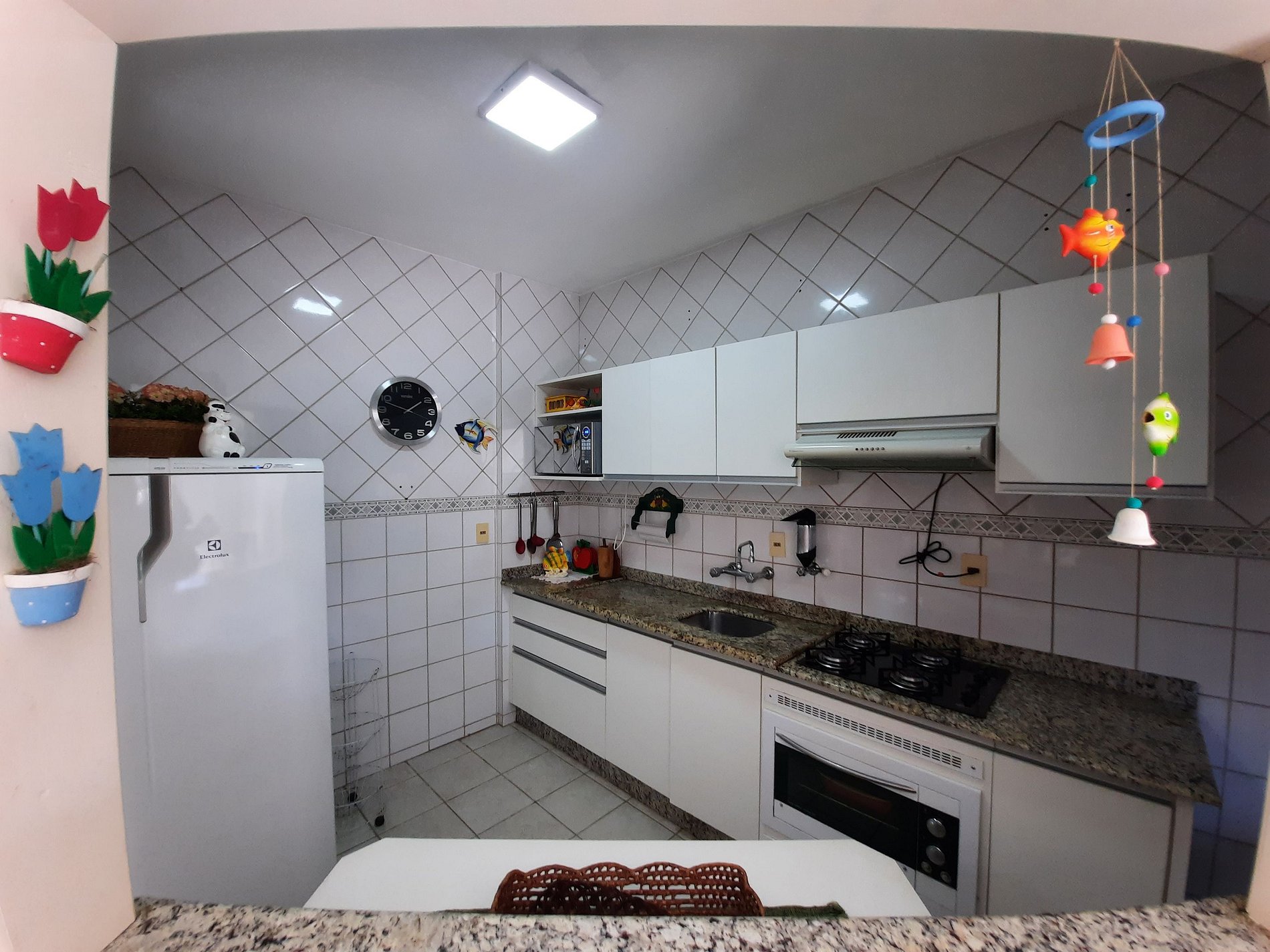 Cozinha com geladeira, fogão 4 bocas, micro-ondas e demais utensílios básico